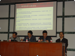 教务处王继原主任主持了本次会议,首先由物理学科组长左金辉老师对高一学生做了“研究性学习”培训报告,接下来学生代表上台宣读《计时器的发展与研究》、《称量器的发展与研究》开题报告,分管教学的李育军副校长与高一年级刘胜光主任分别作了动员发言。