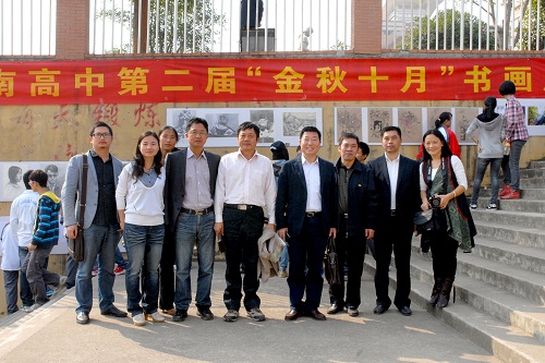 10月23日,我校在学校田径场隆重举行第二届金秋十月书画展。程功武校长、刘堂利、李志、李育军、潘世南副校长以及鄂南高中广大学子一起参观了书画展。潘世南副校长为获奖学生颁奖。