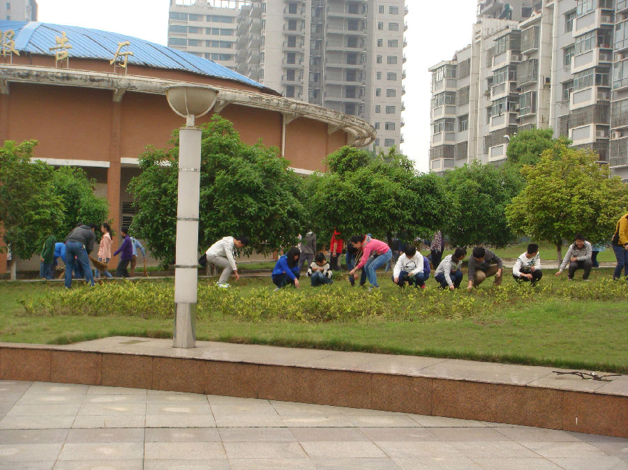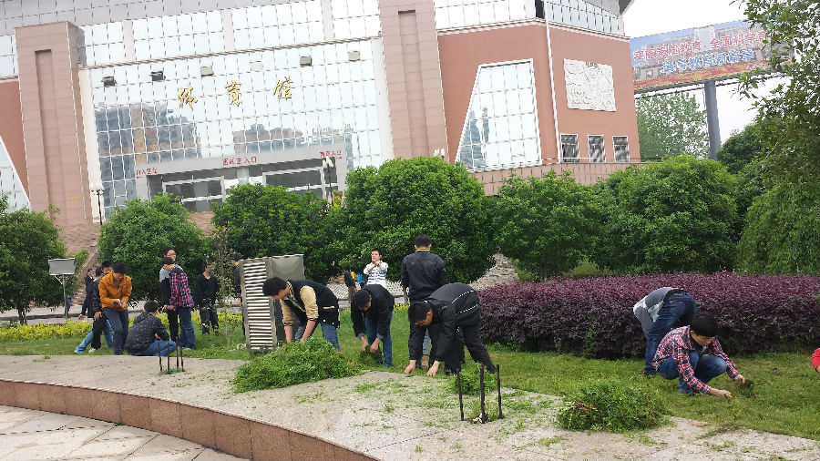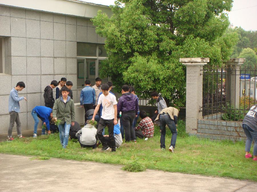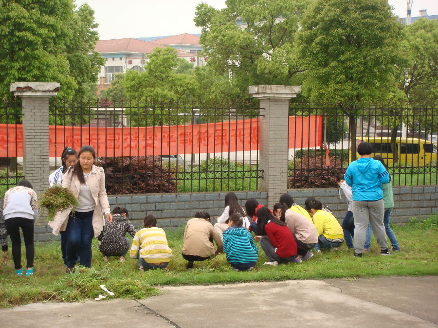 高二(21)班的志愿者们秉承国际化的标准,连石头缝里的杂草都不放过
