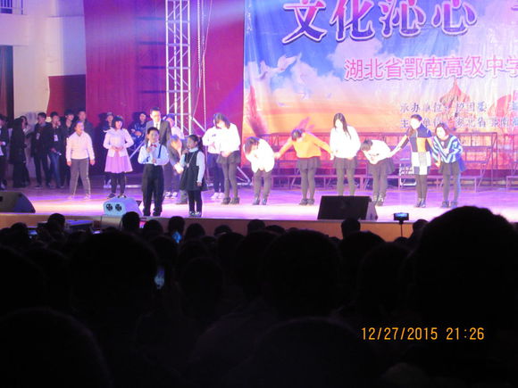 2015年12月27日,鄂南高中举行2016年“文化沁心,青春扬帆”元旦晚会,全校师生喜迎2016年的到来。元旦晚会由校团委、高二年级承办。鄂南高中校长程功武,副校长李育军、刘堂利、熊正维、李志、王能俭、潘世南,副县级调研员陈斌、李德胜,各处室、年级负责人,鄂南高中全体师生及部分关心鄂南高中发展的学生家长,一起观看了本场晚会。