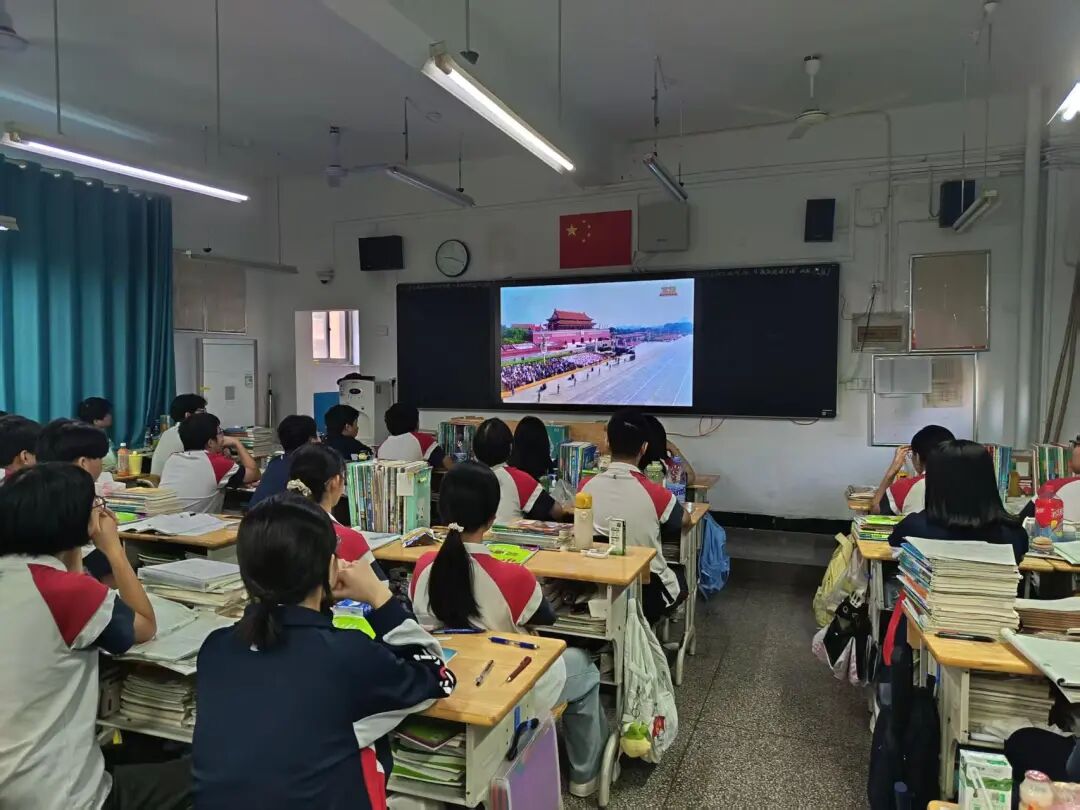 山河虽安,历史不忘;开创未来,吾辈自强。阅兵活动是党和国家政治生活中的一件大事,也是一堂生动的思想政治教育课和爱国主义教育课。师生通过观看直播,深切感受人民军队威武雄壮和国家发展杰出成就,进一步增强民族自豪感。学校将以此次观会活动为契机,在全校深入开展爱国主义教育,弘扬抗战精神,汲取奋进力量,以实际行动践行教育誓言,推动育人事业高质量发展。