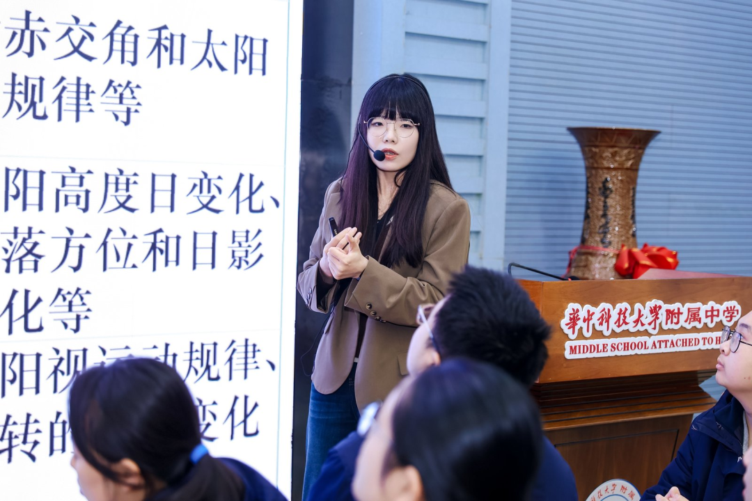 10月31日,徐婵老师又站上了省级好课堂的展示舞台。在华中科技大学附属中学举行的2025年“湖北好课堂”系列研讨活动中,其展示的《赤道式日晷》一课赢得了满堂彩。