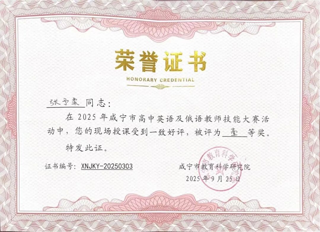 青年教师素养大赛成绩突出:化学学科周盛星、陈小栓老师在市青年教师素养大赛中双双获一等奖;英语学科王瑾、张予柔老师分别在阅读教学说课和教师技能大赛中折桂;语文孙亚婷老师在综合素养比赛中夺魁;物理张子昂老师在市数理化活动中荣获物理课一等奖。这些佳绩正是我校扎实推进青年教师培养工程,助力青年人才快速成长的生动写照。