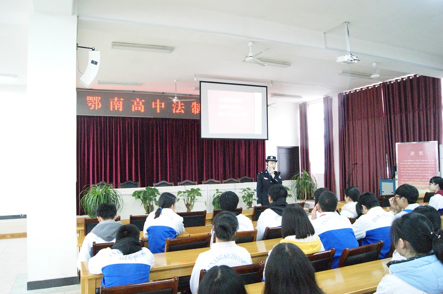 接着,由咸宁监狱法警给同学们上了一堂“鄂南高中法治教育课”,他讲到犯罪的危害、起因等等,还详细分析了中学生走向犯罪的一些迹象、条件。他最后告诫全体同学,希望大家能在今后的工作和生活中引以为戒,牢固树立法纪意识,把握好人生的每一步。