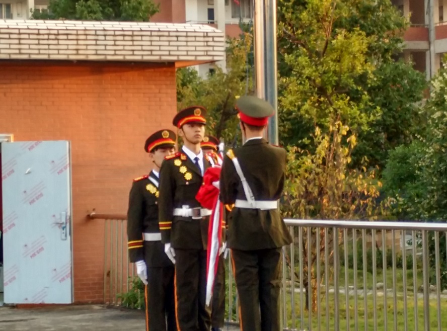 金秋十月,丹桂飘香。2016年10月10日清晨,我校隆重十月升旗仪式。鄂南高中学校领导班子、三个年级全体师生参加了升旗仪式。政教处主任卢大斌发表国旗下讲话。
