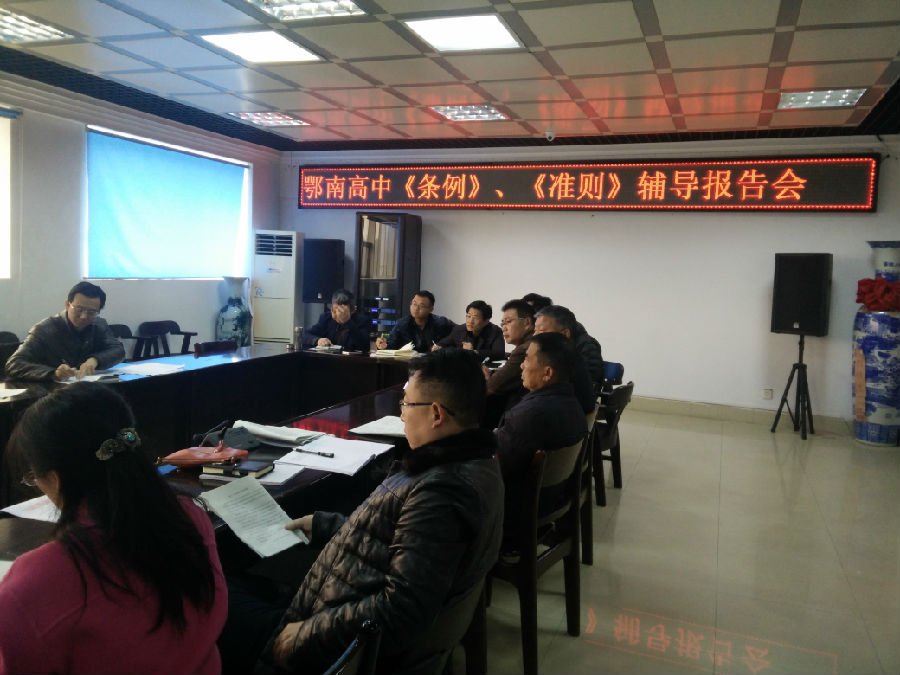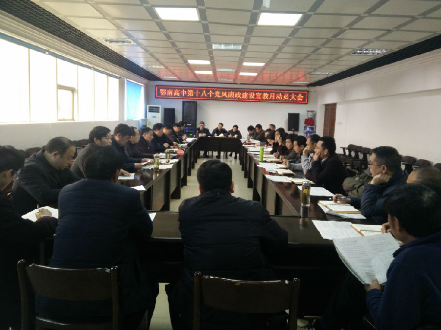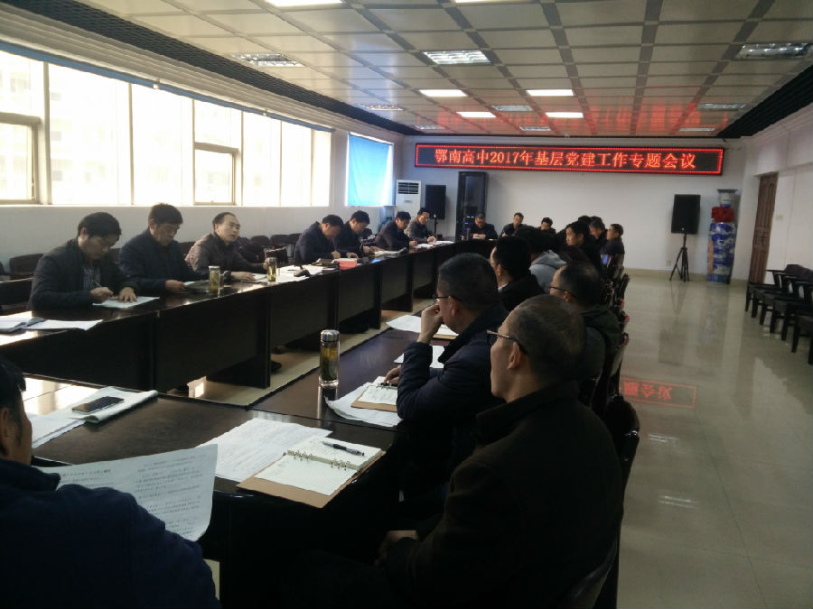 2017年3月10日,鄂南高中召开了2017年党建工作大会,会议共有四个议程:1.校纪委书记阮长德就我校党风廉政建设工作总结了上一年的工作成果并部署了今年的工作安排;2副校长王能俭就党建工作的具体计划进行了安排和布置;3.副调研员陈斌就学校的宣传工作提出了具体要求;4.各位校级领导与分管处室负责人签订责任状。会议由校党委书记,校长程功武主持,全校副科级以上中层干部参加会议。