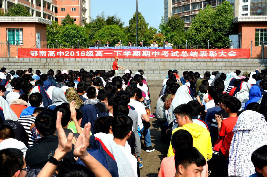 我校2016级高一年级下学期期中考试总结表彰大会掠影