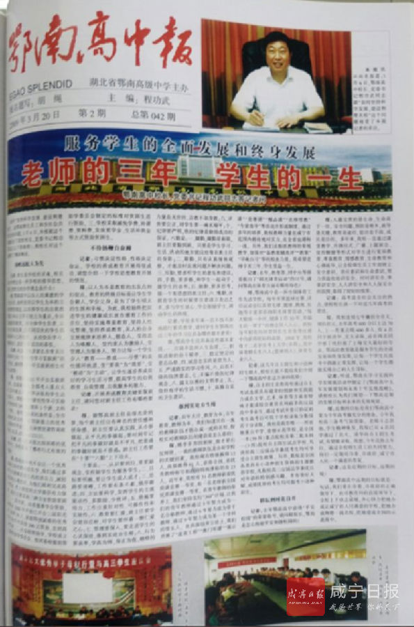 鄂南高中党委书记、校长程功武说,每一个学生都是行走的“鄂高品牌”,走近片里片外的学生,就打开一部生动的“鄂高相册”,每一章节都跳动着“鄂高精神”。