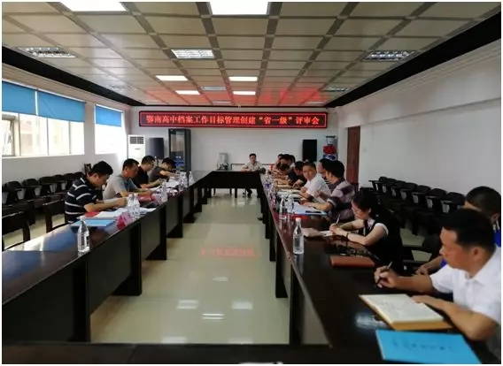 2018年9月10日下午,我校在信息大楼三楼会议室召开档案工作目标管理创建“省一级”评审会。评审组组长、市档案局副县调傅宏同志,市档案局王屹同志、薛晓阳同志,市教育局党组成员、副局长张海泉同志,市教育局党组成员、校长、党委书记袁慎彬同志,党委副书记、副校长刘堂利同志,鄂南高中各处室、年级主要负责人与会。会议由袁慎彬同志主持。