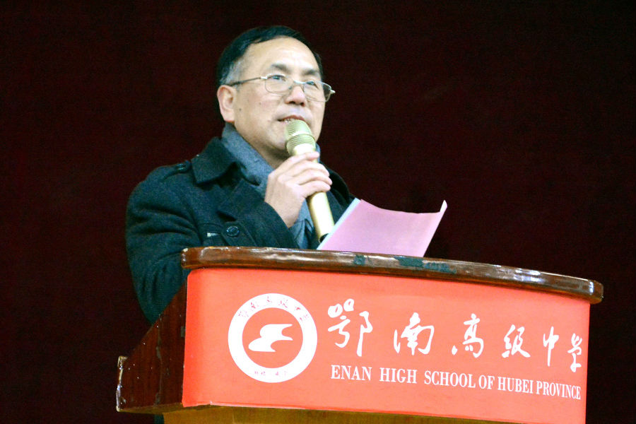 王能俭副校长代表鄂南高中致辞!王校长说,高考是人生征途中一座重要的里程碑,它对翻开我们人生崭新的一页有着不可估量的作用,它就像捧在手中的一颗珍珠,会使你的人生光彩闪耀,会使你的梦想近在咫尺,它会让你拥有更广阔的树雄心酬壮志的舞台,它会让你登上风光无限的山峰。希望同学们发扬顽强拼搏的精神,永不言败,坚持不懈,超越自我,树立必胜的信念!