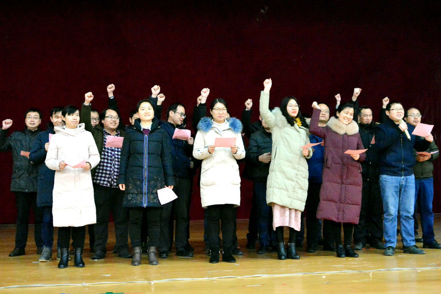 我们愿用生命做笔,以心血为墨,郑重承诺:以校为家,无私奉献;精诚团结,追求卓越;研透考纲,精准导航;二零一九,定铸辉煌;我们坚信:奋战一百天,会当凌绝顶;收获一百天,一览众山小;流金六月,我们注定成功;理综必胜,鄂高必胜;