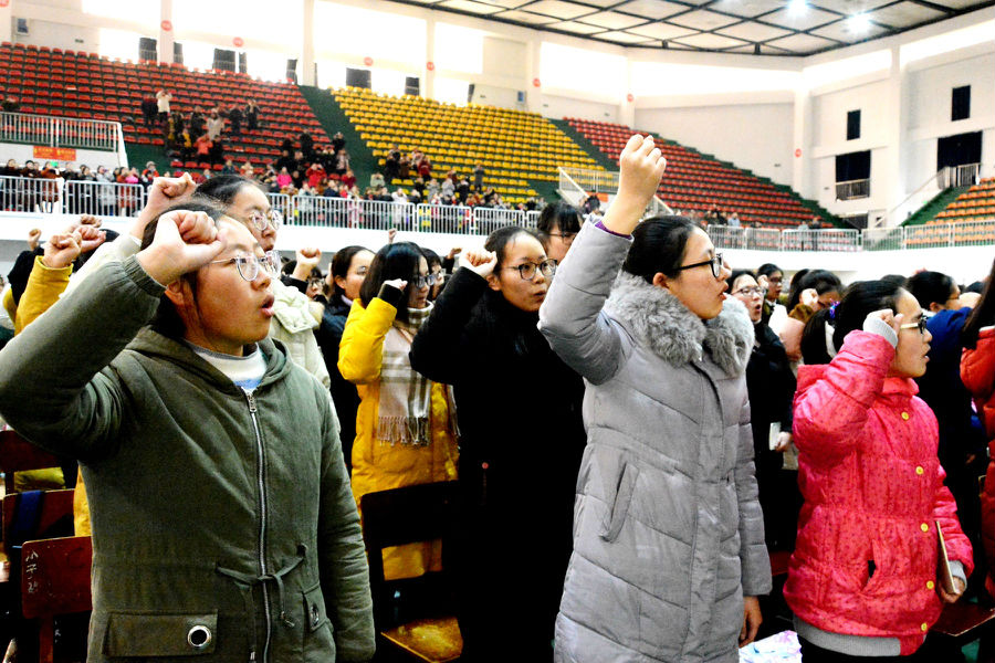 师生们信心百倍,咬定高考目标不松劲!