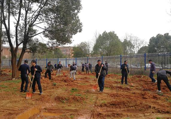 植树造林 美化校园我校开展教职工校园义务植树活动