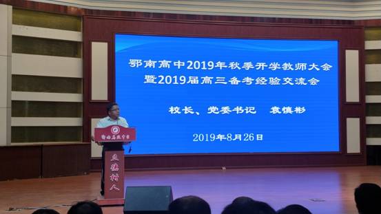 8月26日下午,我校在学术报告厅举办2019届高考备考经验交流会,校党委成员、副校长潘世南主持会议,市教育局党组成员,校长、党委书记袁慎彬出席会议并讲话,全校专任教师参加会议。