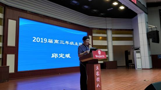 2019届高三年级主任邱定斌介绍了今年高考基本情况及年级管理方面的“八大特色”并总结归纳了本届高考备考方面的问题和不足。语、数、外、理、化、生、政、史、地分别就本学科三年来的教学和备考经验作了简要的交流发言。