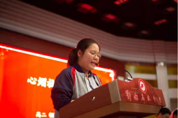 韩浠同学将心熠社的荣耀与责任贯穿发言始终,表达了对心熠社成为老师与同学之间关系纽带的期待,展现了心熠社同学满怀信心,青春洋溢的风貌。