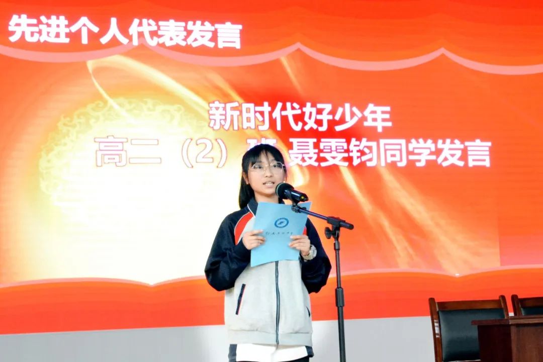 先进个人代表——新时代好少年代表高二(2)班聂雯钧发言