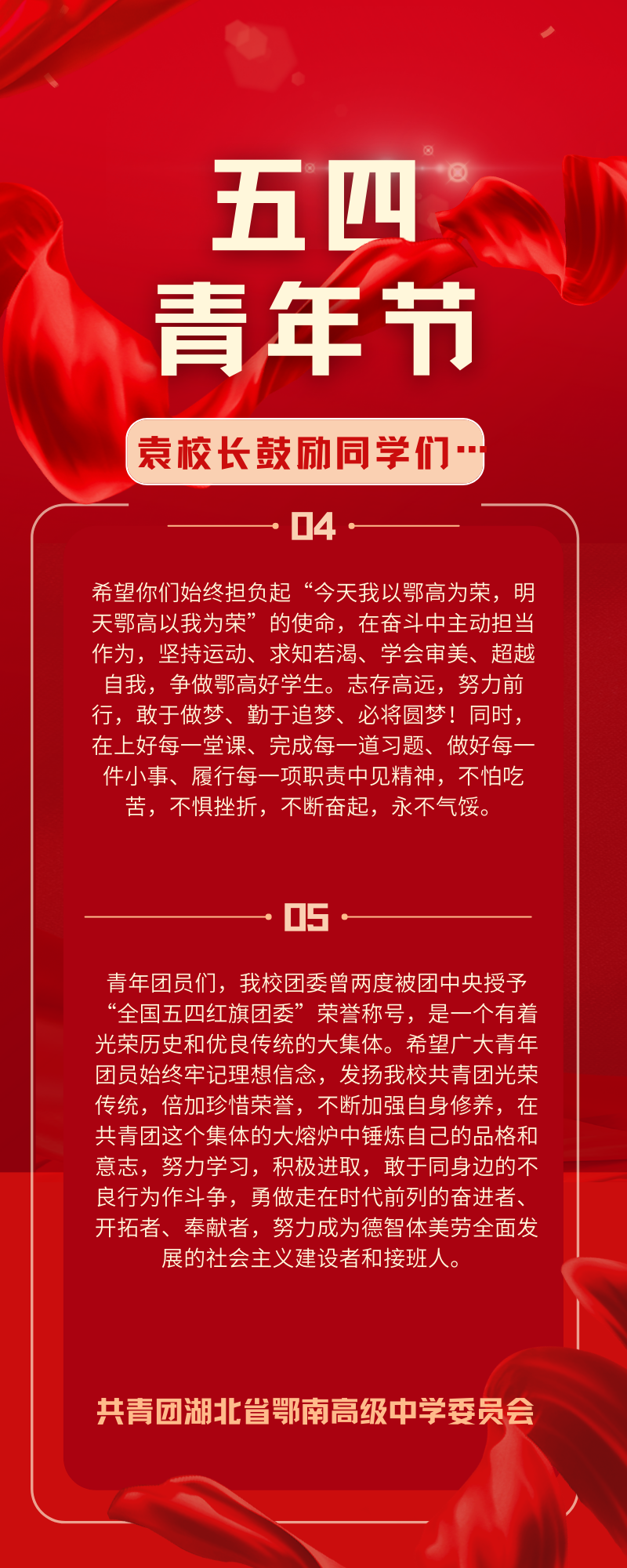为迎接中国共产党第二十次全国代表大会,庆祝中国共产主义青年团成立100周年,教育广大青年永远跟党走,加强思想政治学习教育,团结带领广大青年,围绕学校中心工作,服务学校改革发展大局,奋力谱写新时代鄂南高中高质量发展新篇章,鄂南高中举行“五四”表彰大会暨庆祝建团100周年主题团日活动。