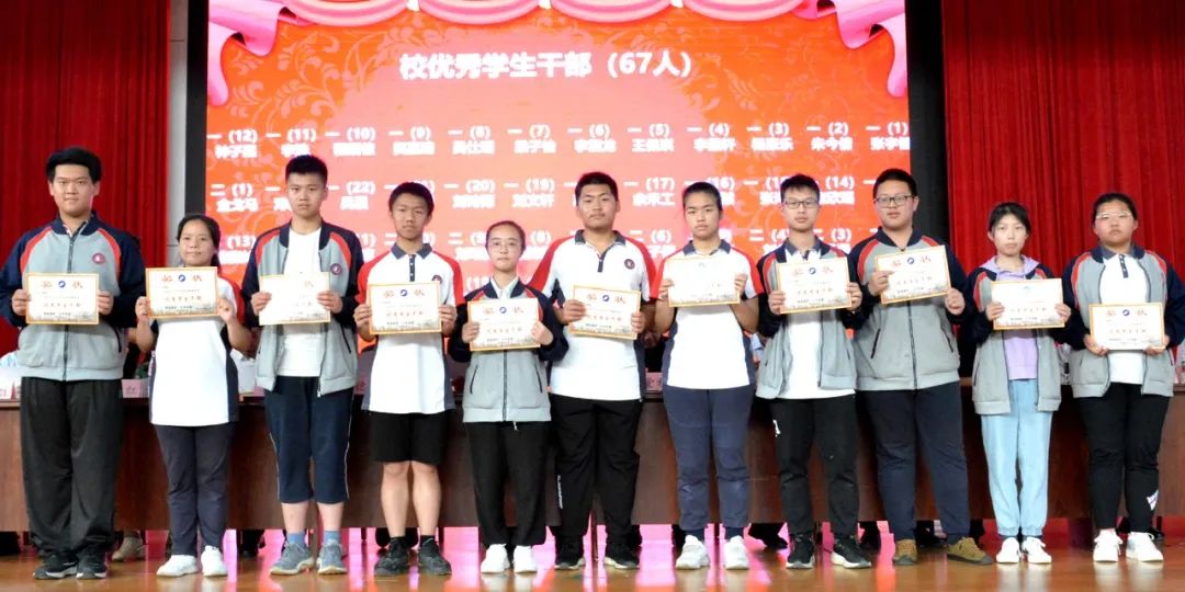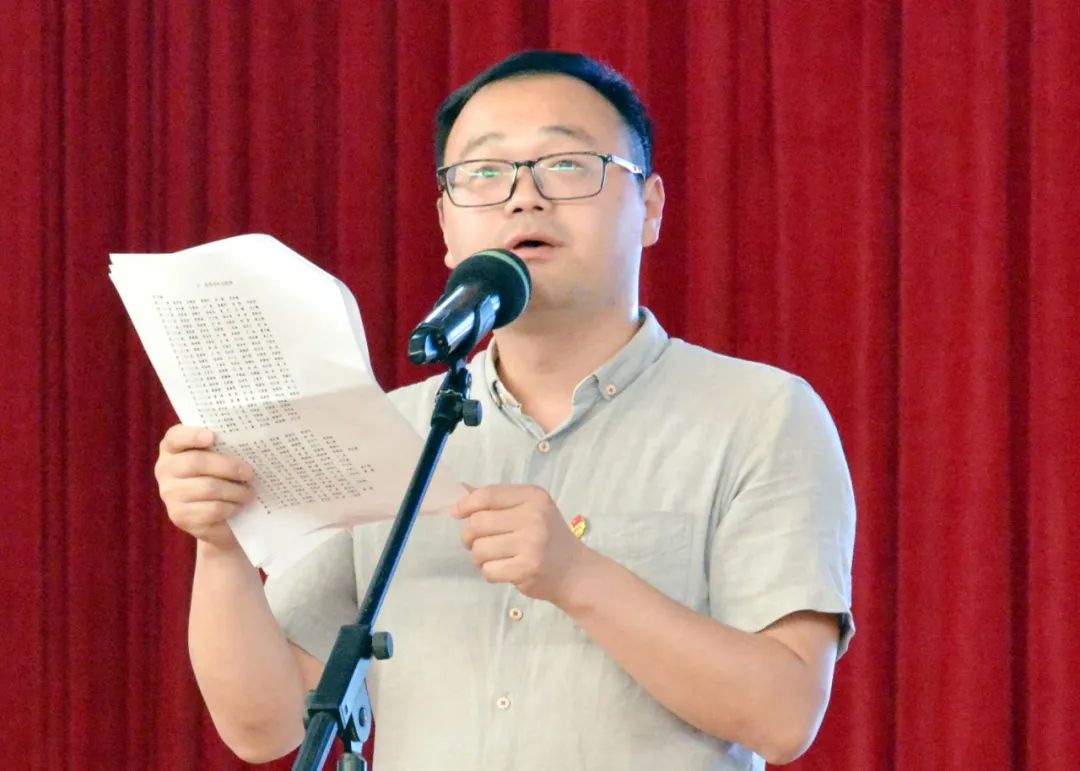 校团委罗俊宣读关于表彰2021-2022学年度五四红旗团支部、新时代好少年、模范团干、优秀团员、优秀宣传工作者、优秀劳动委员、优秀升旗队员、优秀青年志愿者等的决定
