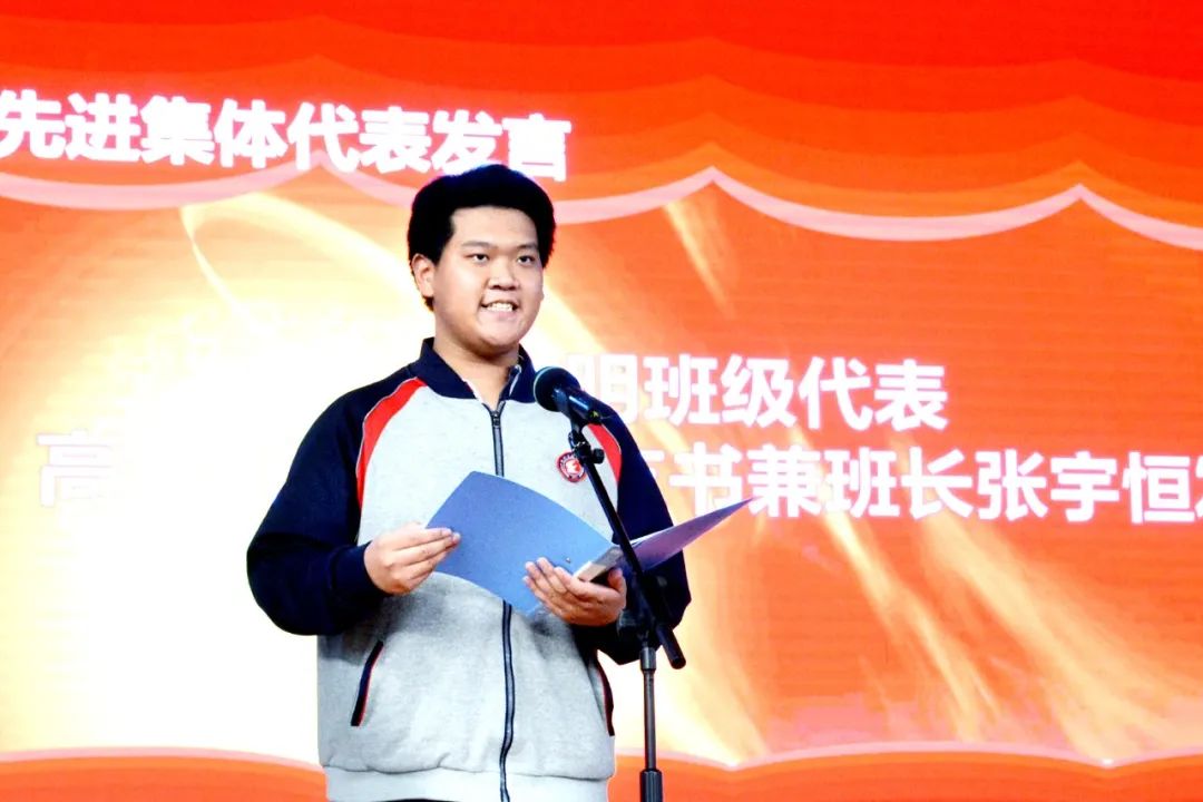 学生发展处主任华绪柱宣读关于表彰2021-2022学年度文明班级、文明寝室、优秀学生干部、优秀学生、优秀寝室长的决定