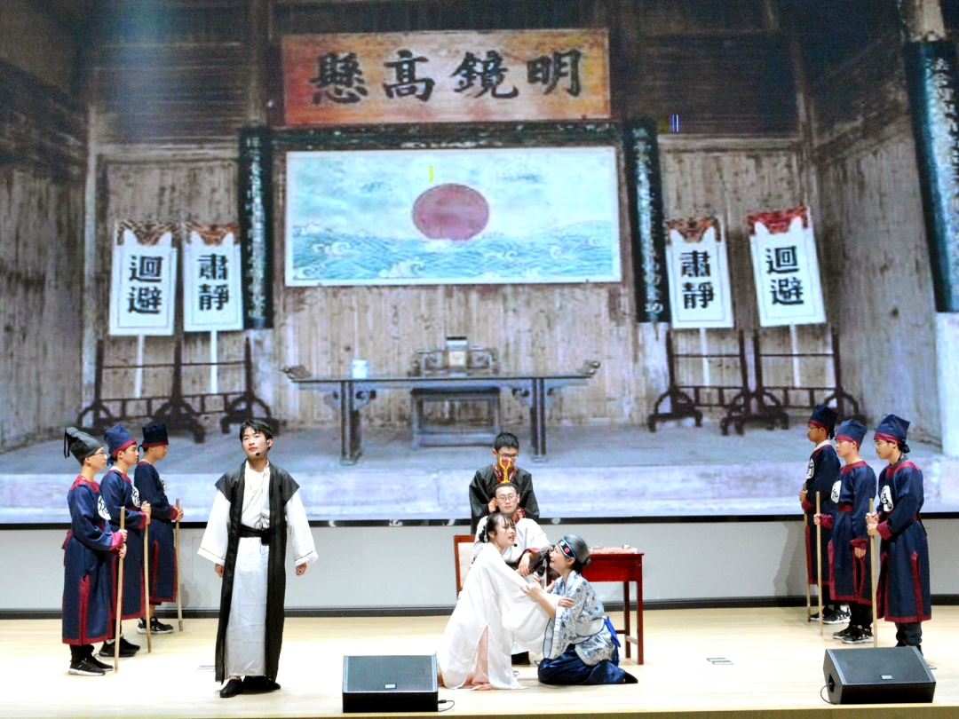 高一年级十一个班级的话剧节目依次上台,他们用自己的表演诠释经典,引来阵阵掌声。