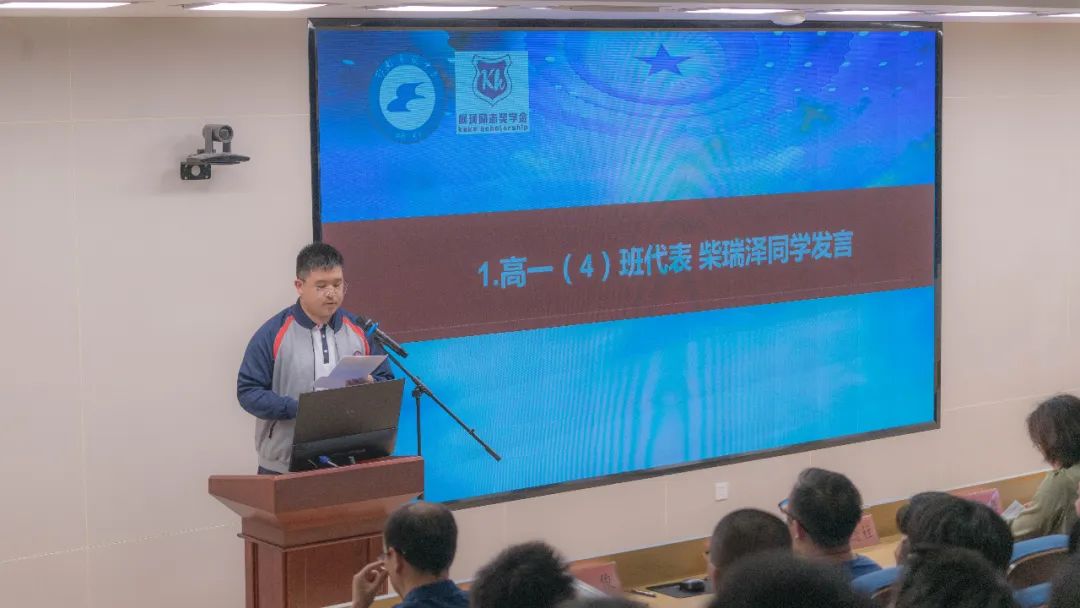 发放奖学金仪式上,两位校友分享了自己的学习成长感悟,并向在校学弟学妹提出了成长建议。柯珂女士从高中学习生活谈起,每一次考试、比赛总是与第一名擦肩而过,但这“差一点”的成绩并没影响她对目标的坚持,最终考入理想的大学,并如愿留学攻读硕士。柯珂娓娓道来的成长故事,给了大家坚持奋斗的信心。周恒山先生从当前所处的时代出发,分享成长的关键因素,他勉励大家坚持运动,野蛮体魄;坚持修身,健全人格;坚持求索,成就学业,探索学习的深度,拓宽学习的广度,找到适合自己的学习方法。尤其在学习方面,周恒山结合个人体会,建议大家对未选修的课程,依然保持学习的热情,这些学科知识将让人受益终身。