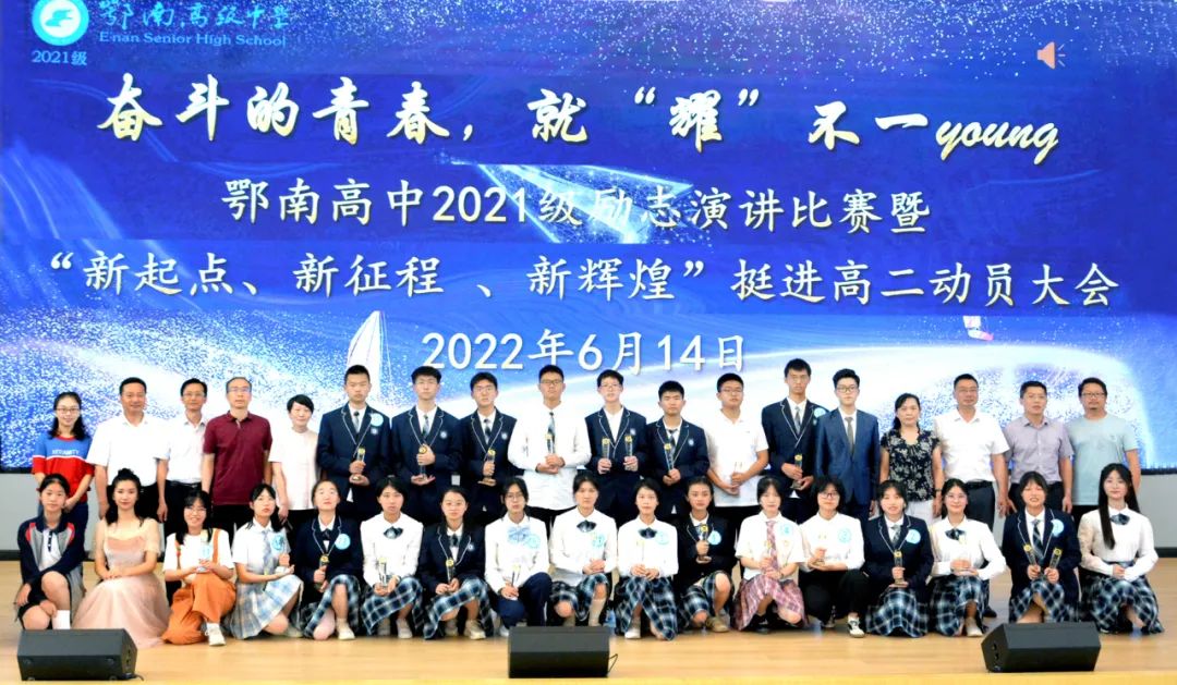 为培养同学们自主自律自立自强的精神品质,营造积极向上的学风和级风,以更好的精神面貌迎接高二学习生活,并为创建全国文明校园助力,2022年6月14日2021级“奋斗的青春,就‘耀’不一young”励志演讲比赛暨“新起点、新征程、新辉煌”挺进高二动员大会在学术报告厅(新)举行。校领导阮长德、潘世南、李志、向阳红、李德胜,学生发展处主任华绪柱、课程管理处主任刘胜光、高一年级主任吕骥,2021级家委会会长邓明,高一年级教师代表及全体同学参加了此次活动。