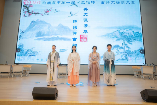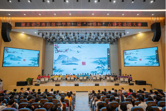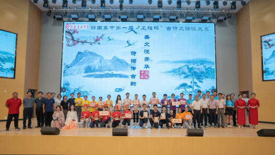 诗词传古韵,美文浸芳华。6月18日19点,鄂南高中第一届“风雅”杯古诗文诵读大赛在新报告厅举行。市教育局党组成员,鄂南高中党委书记、校长袁慎彬出席本次大赛并致辞。出席大赛的还有校领导李志、陈斌、李德胜,相关科室领导张宇、姜纲要、雷奇华,以及年级领导孔松林、陈艳峰等。高二年级全体语文教师、全体学生参加大赛。