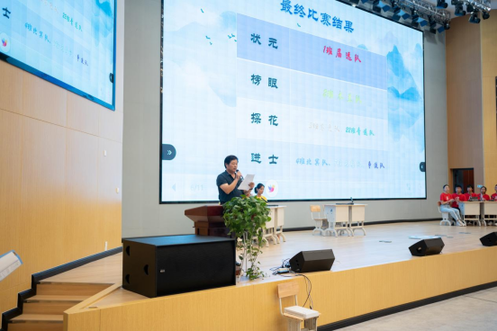 决赛共分三轮,第一轮为七进四晋级赛,第二轮为四进二半决赛,第三轮为一对一决赛。各轮比赛环环相扣,精彩纷呈。台上选手势均力敌,难分伯仲;台下观众热情高涨,掌声雷动。经过三轮激烈角逐,大赛共决出“状元”队一支、“榜眼”队一支、“探花”队两支、“进士”队三支。
