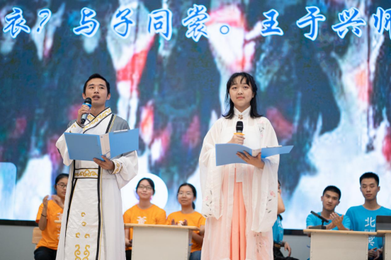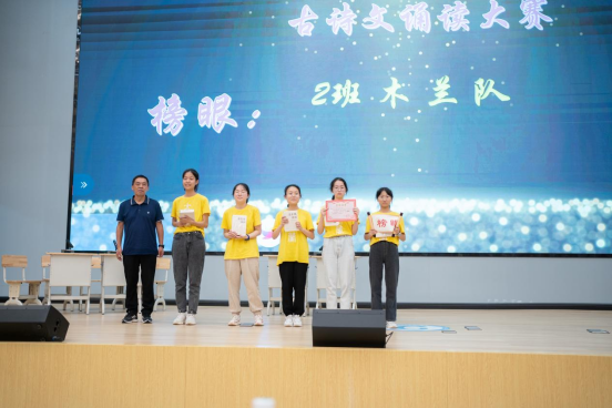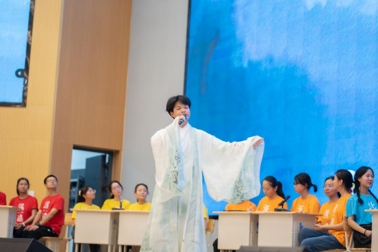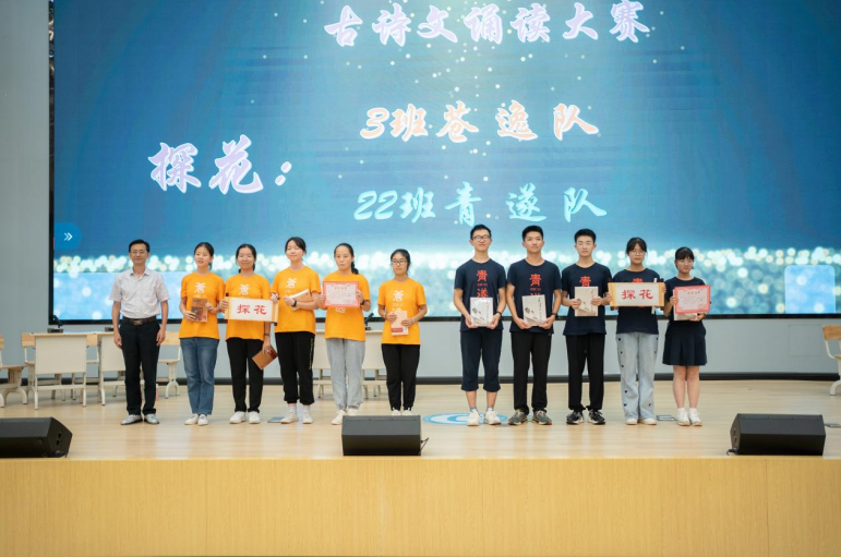 本次大赛亮点密集,高潮迭起。各个环节衔接紧凑,环环相扣;PPT画面精美,意境悠远;题型多样,覆盖面广;选手素质全面,反映敏捷。特别是担任主持的尤明飞老师和来自高二(11)班的徐玉萌、二(17)班的吴之熠、高二(19)班的张十予等四位主持人身着汉服华丽登台时,全场惊艳,他们台风稳健,应对沉着。表演环节中,来自高二(3)班的汪仕坤带来的古风歌曲《琵琶行》,胡凯和曾琪琛两位老师带来的诗朗诵《华夏诗韵》,魏巍老师带来的诗朗诵《将进酒》,给观众带来了极致的视听享受,将学生带入了充满诗情画意的古典文化中,为整个活动掀起新的高潮。