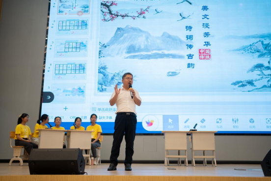 评委组朱锐老师的精彩点评丰富了学生的文史知识,开阔了学生的视野。胡金辉老师认为本次活动内容丰富,形式多样,选手表现惊艳,台下观众参与感、沉浸感强烈,胡老师还希望同学们多多读背、运用、写作古诗文。