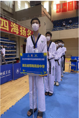 8月21日,2022年中国中学生跆拳道联赛总决赛在湖北省黄冈市落幕。本次比赛分为南北两个赛区,设置20块金牌,共有118支代表队、1523余名运动员参赛。我校胡成涛同学(国家一级运动员)成功夺得全国中学生跆拳道联赛总决赛男子68KG级冠军。