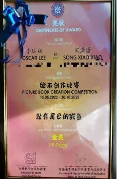 2022年10月30日,由宋潇潇创作、青年画家李延翔插图的《没有尾巴的鳄鱼》绘本书在马来西亚华人绘本创作比赛中荣获金奖。
