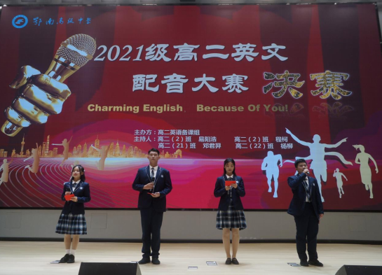 11月1日晚,我校2021级英语配音大赛决赛Charming English,Because of You!在校学术报告厅圆满落幕。市教育局党组成员,校党委书记、校长袁慎彬出席活动,校党委委员、副校长向阳红,副县级调研员李德胜,教师发展处主任姜纲要,高二年级主任吕骥参加了活动。