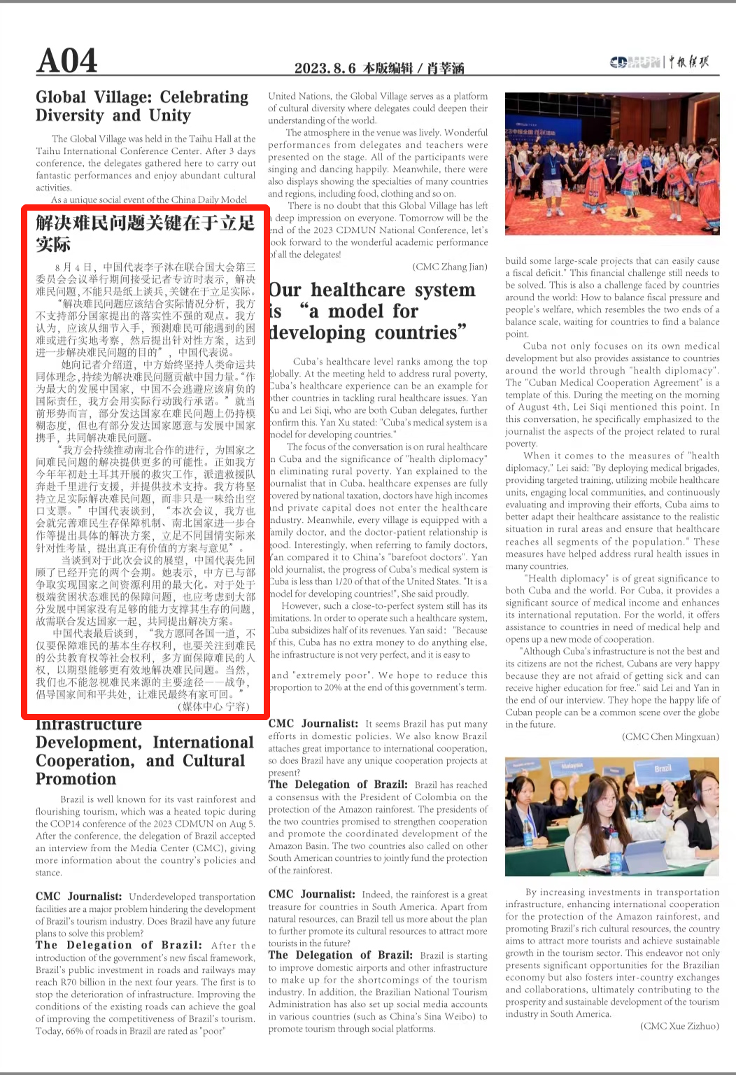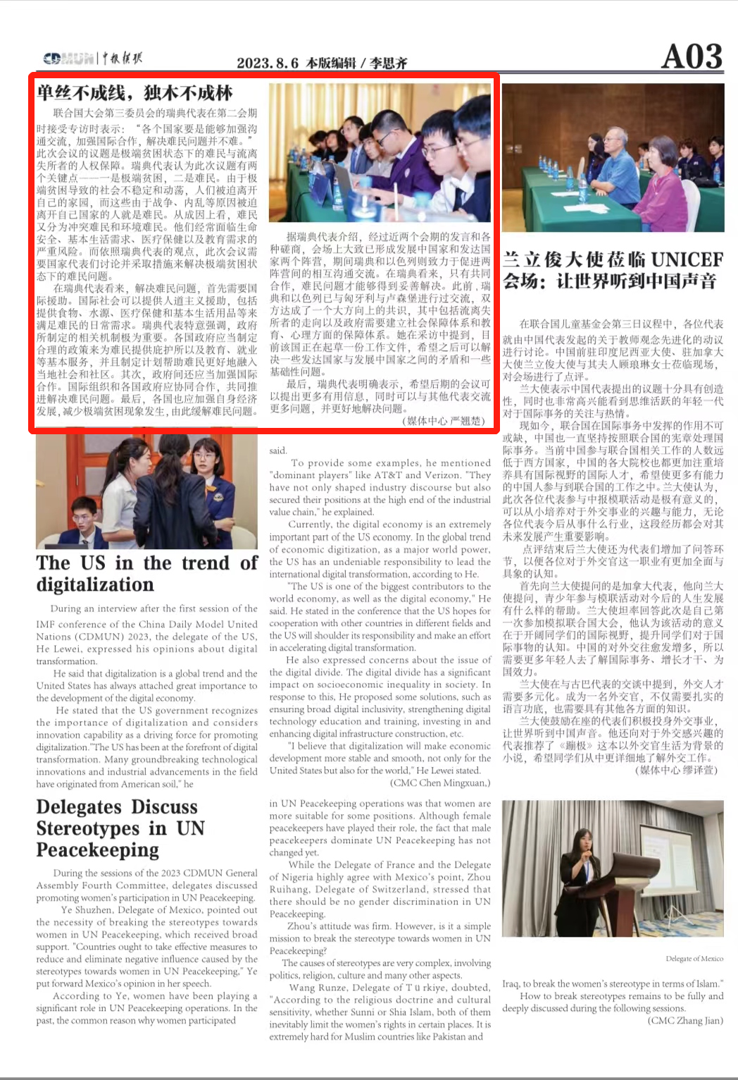 8月1日至4日,我校学生参加了中国日报社、21世纪报社和苏州市政府联合主办的2023中报全国模联活动(简称“中报模联”)并取得佳绩。