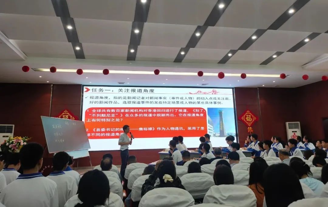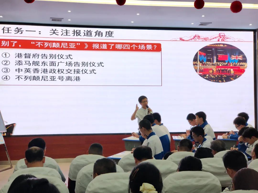 此次活动,由专题报告、联读教学和整本书阅读教学组成,来自各县市重点高中的4位优秀教师在展示课环节进行分享交流。我校青年教师陈涛老师以扎实的专业功底、先进的教学理念、规范的课堂语言、沉稳流畅的师生互动、出彩的教学细节、良好的教学效果,为参会老师呈现了一堂精彩的群文阅读课——《别了,不列颠尼亚》和《县委书记的榜样——焦裕禄》群文教学,赢得了专家和听课老师们的高度赞赏。