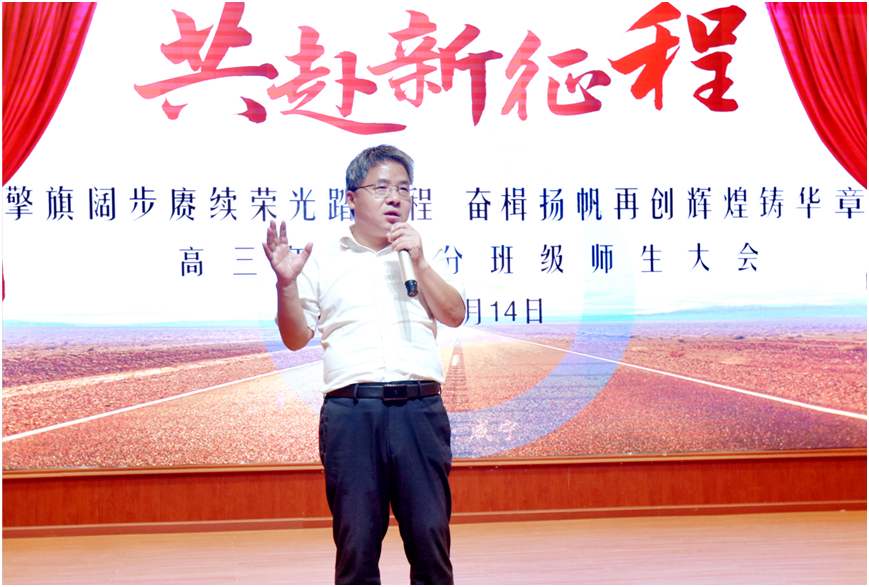 为进一步统一思想、凝聚共识、规范师生复习备考行为、助力高考复习提质增效,高三年级召开了部分班级(10班、11班、12班、13班、15班和16班)师生大会。市教育局党组成员,校党委书记、校长袁慎彬出席会议并讲话。校党委委员、副校长向阳红,副县级调研员李德胜,高三年级党支部书记、年级主任吕骥及年级管理团队成员和家长代表参加了会议。