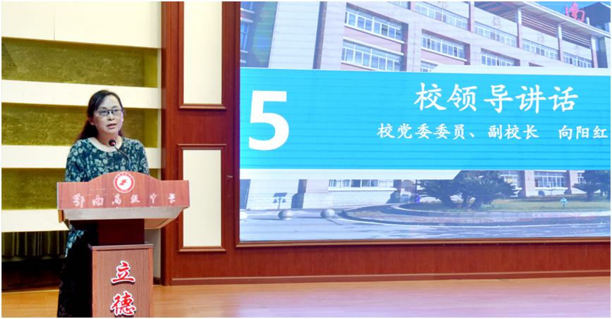 向阳红认为,高三是人生中最为靓丽的一道风景线。我们应该要“拼”,拼出毅力,拼出效率,拼出良好的心态。我们应该要“挤”,挤出零碎时间提高效率,挤出空间勇向前。我们应该要“冲”,冲出属于我们的一片天地,力争上游。向阳红寄语同学们:宝剑锋从磨砺出,梅花香自苦寒来。她希望同学们以辉煌的高考成绩向学校四十周年校庆献礼。