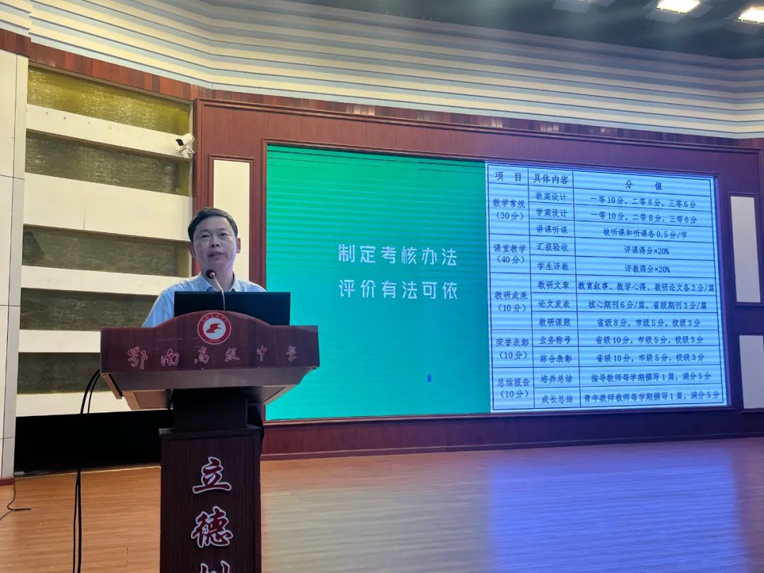 校长袁慎彬对我校青蓝工程“优秀青方教师”“优秀蓝方教师”获得者表示祝贺。袁慎彬指出,一个对自我有要求,对社会有责任感的人,更应关注自我成长和提升。“青蓝工程”是新教师成长的助推剂,拉近了教师之间的距离,有利于凝聚团队、振奋信心、激发斗志,是学校制度和治理体系现代化的应有内容。袁慎彬要求,骨干教师要发挥“头雁效应”,带领并帮助青年教师迅速跑起来、飞起来。青年教师要端正思想,保持好心态;要循序渐进,养成好习惯;要勤学善思,当好学徒;要把奋斗作为最靓丽的青春底色,在火热的青春中放飞人生梦想,在拼搏的青春中成就自我、发展学校。