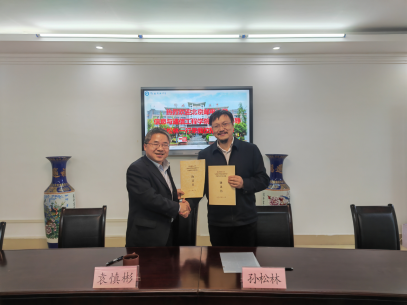 孙松林与袁校长签订《优质生源基地协议书》,并向我校授予“优质生源基地”牌匾。