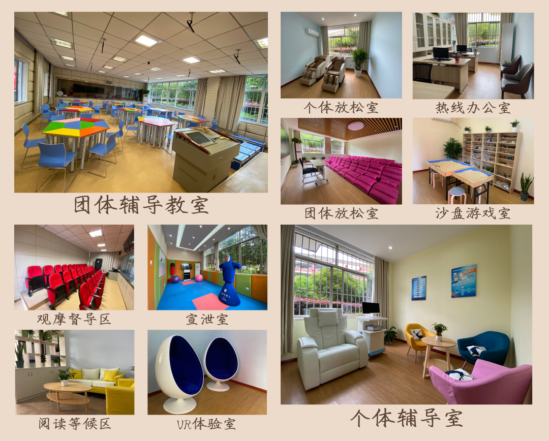 鄂南高级中学心理健康教育中心成立于2019年,总投资接近100万,共430平方米,设有10个功能区,十室一廊。目前有两位专职心理教师、一名兼职心理教师,另有3位教师获得国家二级心理咨询师证书,其中黄紫薇老师是咸宁市“未成年人心理健康专家库”首批入库专家。我校是咸宁市心理学会副会长单位,2023年被咸宁市心理学会授予“优秀会员单位”。