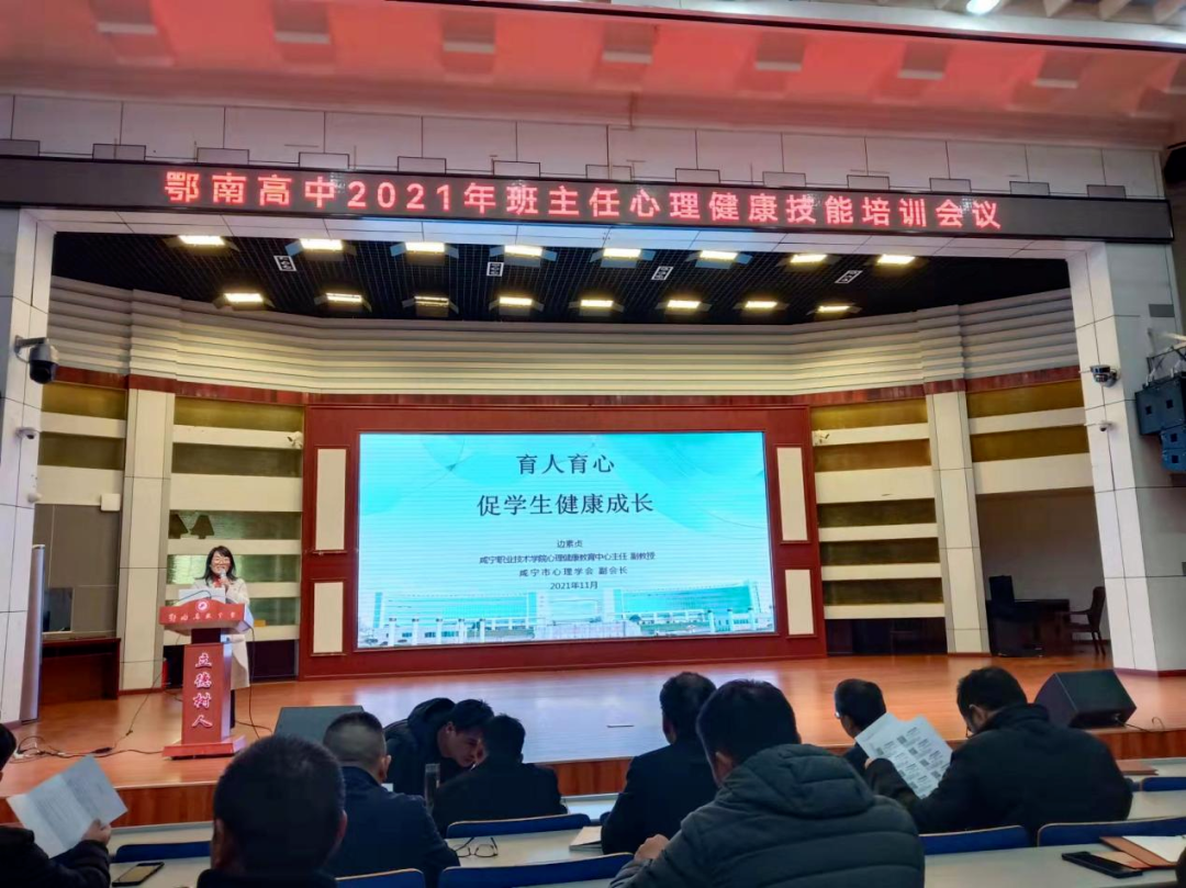 咸宁市心理学会副会长边素贞来我校开展班主任心理健康技能培训