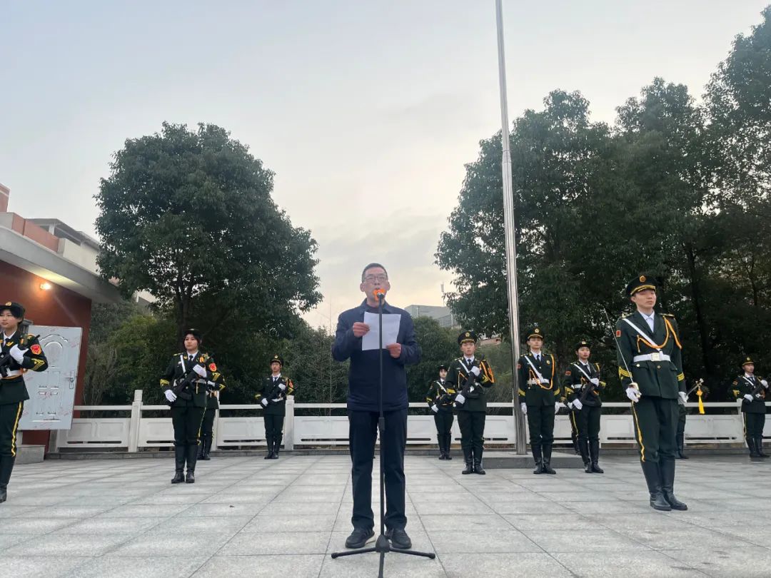 岁月更替、辞旧迎新,今天是2024年我校举行的第一次升旗仪式。我们共同作别了不平凡的2023年,一起迎来崭新充满希望的2024年。我谨代表学校向大家致以新年的问候和衷心的祝愿,祝我们老师们身体健康、工作顺利!祝同学们新年快乐、学习进步!