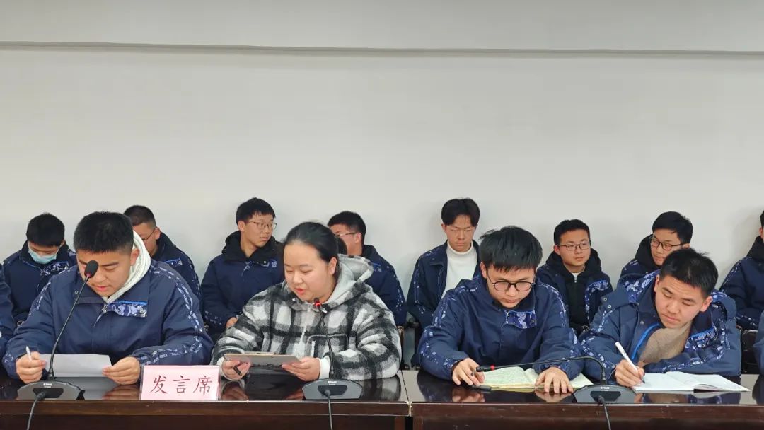 曹雯雯同学结合自身情况,为同学们分享了调节心态,应对压力的技巧。她表示,自信的学习状态、健康的生活习惯、与老师同学交流是缓解压力的有效方式。最后,她祝愿各位同学砥砺奋进,学有所成,以积极心态迎战2024年高考,为学校40周年华诞献礼。