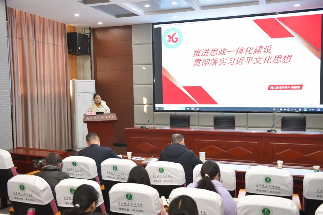 咸宁职业技术学院党委书记高焕清在开幕式上致辞,咸宁市教育局党组书记、局长梁薇出席开幕式并讲话。梁局长结合我市思政课的现状,着重阐述了思政课的时效性和重要性以及对思政课一体化的理解。她要求思政课教师在教学中要正确处理好讲道理和讲知识的关系,思政课要讲究方式与方法,将道理讲透、讲深、讲活、讲火;处理好“一杯水”和“一江水”的关系,广大思政课教师要多学习多交流,要有丰富的知识储备和教育情怀,要注重激发学生的学习兴趣,引导学生形成正确的三观。梁局长希望通过大中小学思政课一体化共同体这个平台,凝聚力量助力我市思政课的发展,要从思想上重视,行动中践行,贯彻落实好思政一体化建设。梁局长表示,市教育局将以思政课为突破口,搞好思政课堂教学改革,切实提升教育教学质量。活动由咸宁职业技术学院马克思主义学院院长龚斌安主持。市教育局党组成员,鄂南高中党委书记、校长袁慎彬和我校政治学科教研组长杨小燕参加活动。我校被评为“咸宁市大中小学思政一体化共同体建设实践教学基地”,梁薇局长为基地学校授牌。 我校杨小燕老师被聘为咸宁市大中小学思政一体化教学指导委员会委员,咸宁市职业技术学院党委书记高焕清为受聘委员颁发聘书。 在集体备课环节,来自湖北科技学院马克思主义学院、咸宁职业教育(集团)学校、咸宁高中、市温泉中学、市实验小学、咸宁职业技术学院马克思主义学院的教师代表围绕如何在本学段思政课教学中贯彻落实习近平文化思想依次作交流发言,他们针对不同学段学生的成长特征、认知特点和行为规律,创新课堂组织形式,充分运用案例式教学、讨论式教学、沉浸式教学,为学生量身打造了一场形魂兼备的“思政文化盛宴”。 大中小学思政一体化建设教学指导委员会相关学段委员对6位教师的发言依次进行了点评。 我校杨小燕老师针对高中学段咸宁高中白丽雪老师的现场授课进行了点评,对白老师充分的备课、充实的内容、将政治学科的核心素养有效融入习近平文化思想的教学实践给予充分肯定。杨小燕老师指出,高中思政课融入习近平文化思想的实施路径,就是要抓住思政课堂主阵地。将深挖课本教材与有效整合网络媒体资源相结合,将推进习近平文化思想“进头脑”与“重实践”相结合,将学习贯彻落实习近平文化思想与高中七本政治教材相结合。杨小燕老师指出,思政课教师要提升综合素养,增强专业性和示范性,将思政课的政治性、时效性、理论性、导向性与实践性融为一体,深入探索高中思政课如何更好贯彻落实习近平文化思想,要不断深挖教材,深研课标,深入实际,将思政课核心素养落实到真情境、真问题、真讨论中,让学生们在学习过程中做到真思考,真领悟,真实践。湖北科技学院马克思主义学院院长刘侣萍教授作了《深刻把握习近平文化思想的核心要义》专题辅导报告。 刘教授从习近平文化思想的丰富内涵、建设具有强大凝聚力和引领力的社会主义意识形态、培育和践行社会主义核心价值观、中华优秀传统文化的创造性转化和创新性发展、建设社会主义文化强国五个方面展开,事例贴切,观点鲜明,内容全面,设计精巧、讲解清晰,旁征博引。为广大思政课教师理解掌握习近平文化思想提供了方法和路径。 咸宁市教育科学研究院书记汪洋作了《中华优秀传统文化教育模块教学策略及案例分析》专题报告。他从中华优秀传统文化的价值内容、中华优秀传统文化进教材的课标解读、中华优秀传统文化在中小学教材中的体现、中华优秀传统文化模块的教学策略四个方面阐述了中小学思政课教学中如何开展中华优秀传统文化教育的教学策略,给中小学思政课教师教学提供了具体的指导。 两位专家的报告内容指导性强,参会教师纷纷表示,要将报告中的新观点、新做法积极转化为思想政治理论课教学成果,大力加强思想政治理论课建设工作,全力推动思想政治理论课改革创新,切实提高思想政治理论课的实践效果,全面落实立德树人根本任务。 袁校长强调,教师不能只给学生传授知识,更要培养学生的高尚品德、良好品行和高雅品位。身为教育工作者,要时刻铭记立德树人的初心使命,思政课教师更要深钻教材,挖掘课程中的思政元素,争做“先行者”“主力军”,成为“铸魂人”,要彰显思政课教师的责任与担当。在今后的教育教学过程中,思政课教师必须朝着课程思政、大中小思政一体化方向继续努力,把思政学科的核心素养融入课程,践行大思政教育理念,做课程思政的践行者。政治学科教研组要常态化开展跨校、跨学段思政教育交流活动,聚焦外引内扩,绘好教育资源新地图,夯实思政课堂主阵地和社会大课堂实践作用,积极探索云课堂的辅助效果,打造金牌思政精品课程。 此次活动旨在进一步贯彻落实习近平总书记在学校思想政治理论课教师座谈会上的重要讲话精神,推进中小学思政课一体化建设,切实发挥思政课在落实立德树人根本任务中的关键作用,全面增强中小学思政课育人效果,整体提升全市思政课教师的教研能力和育人水平。