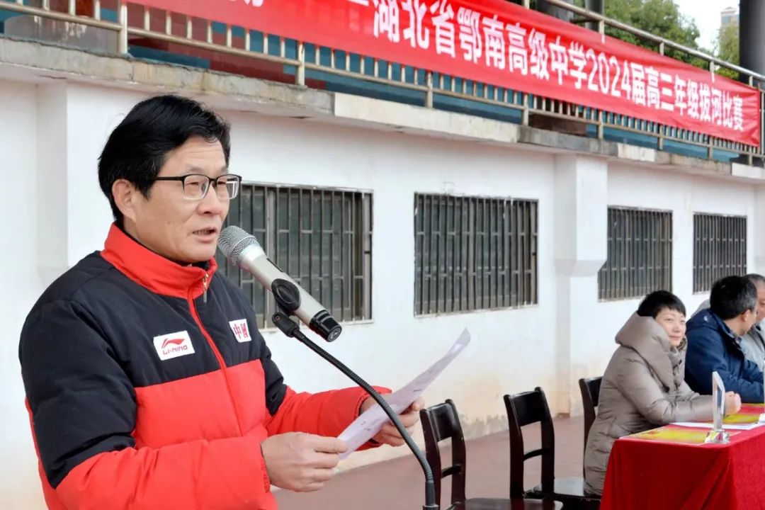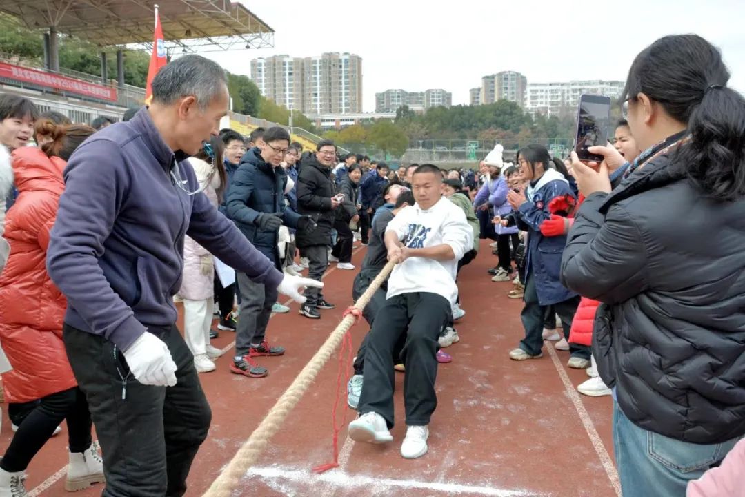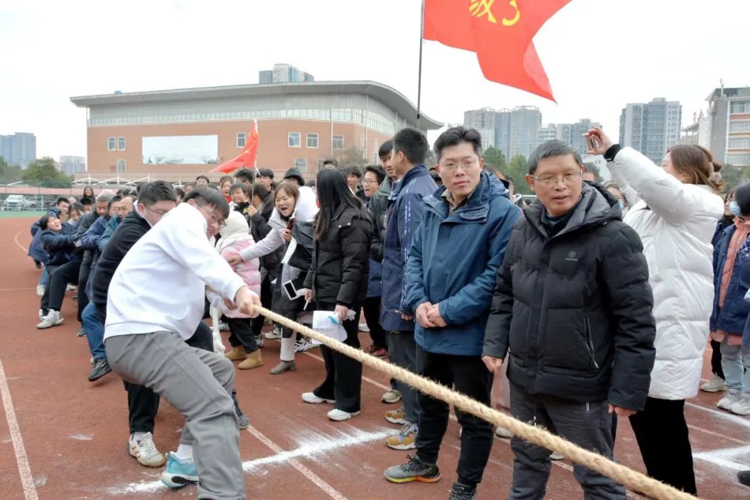 为进一步助力高三复习备考,为高三师生减压赋能,增强大家的集体荣誉感,展现团结、协作、奋进的精神风貌,1月24日下午,高三年级在田径场举行了拔河比赛。市教育局党组成员,校党委书记、校长袁慎彬出席活动。校党委委员、纪委书记阮长德,校党委委员、副校长向阳红,副县级调研员李德胜,体卫艺处主任邱定斌,高三年级党支部书记、主任吕骥,高三年级家委会会长邓明,高三年级全体师生及部分家长代表参加了活动。活动由年级副主任陈佳敏主持。