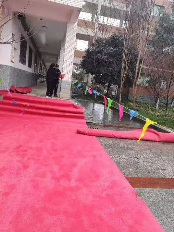 在降雪发生之前,后勤服务处、校安办已对校园易出现安全隐患的区域采取必要的防范措施,在易滑路段铺设防滑垫、对树木进行加固等,确保校园安全。