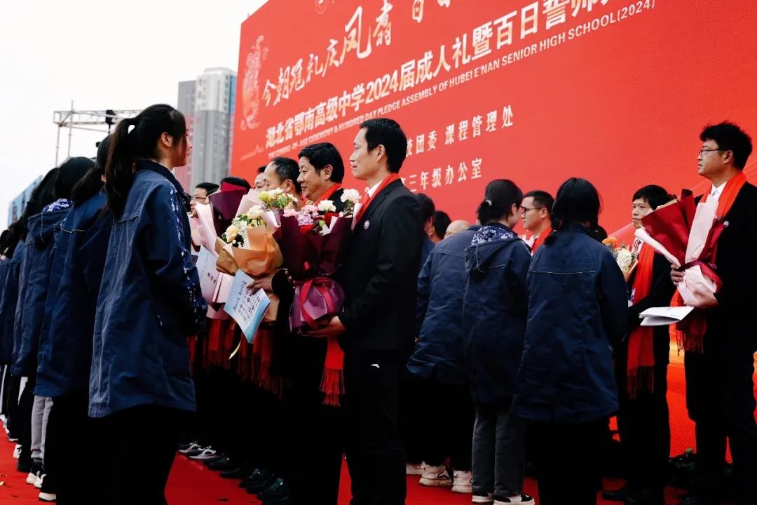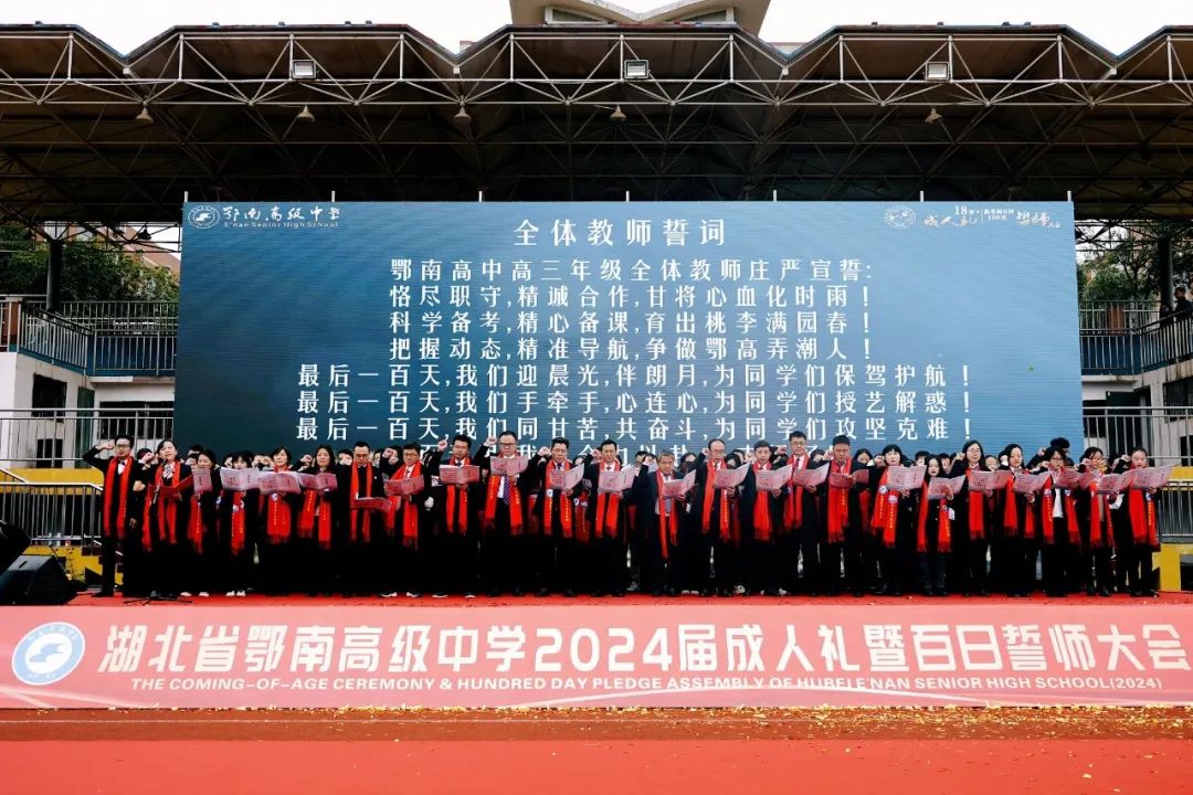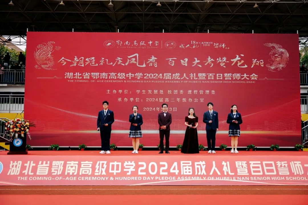 “今朝冠礼庆凤翥,百日大考赞龙翔”—— 鄂南高中 2024 届成人礼暨百日誓师活动即将隆重举行!2024 年学校将迎来建校 40 华诞,贺礼多种多样,但 2024 年卓越的高考成绩才是最大最重的贺礼!这是历史赋予我们的神圣使命,让我们以坚定的追求、奋斗的姿态、决胜的信心,永葆“闯”的精神、“创”的劲头、“干”的作风,努力创造让社会刮目相看的新的更大的成绩!以斗争精神决战决胜全面实现高考目标,如期而高质量建成“141”工程,赓续荣光,再创辉煌!为 40 周年校庆献礼!