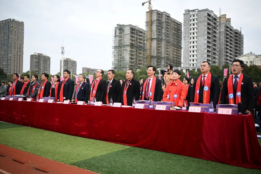 又是一年高考季,万千学子圆梦时。为落实立德树人根本任务,打造我校德育品牌,进一步激发高三学生的责任意识和拼搏精神,充分调动师生的备考热情,营造积极进取的备考氛围,打造家校合育共同体,3月3日下午,2024届高三年级在校田径场举行了盛大的学生成人礼暨百日誓师活动。咸宁市教育局党组成员,校党委书记、校长袁慎彬,校领导阮长德、潘世南、李志、向阳红、王能俭、陈斌、李德胜,学生发展处、课程管理处、校团委等部门负责人,年级家委会会长邓明,高三年级全体师生和家长们参加了此次活动。