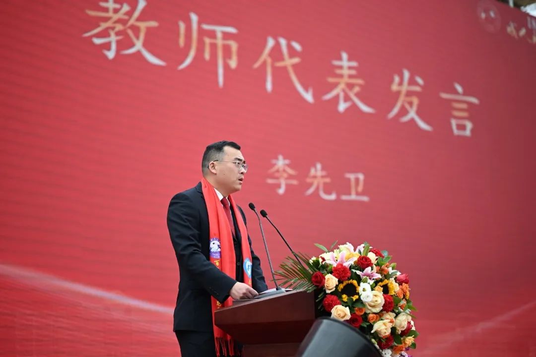李先卫老师代表教师致辞,为出征2024年高考的同学们送上美好的祝福与殷殷的期盼。他希望同学们坚定一个信念——那就是2024年高考我们必赢;牢记两个嘱托,坚持自律和行动,培养超强抗打击的能力;突破三个瓶颈,夯实基础,增强规范意识,保持身心愉悦。最后他祝愿同学们怀揣热辣滚烫的勇气,向着理想,奋勇冲击。